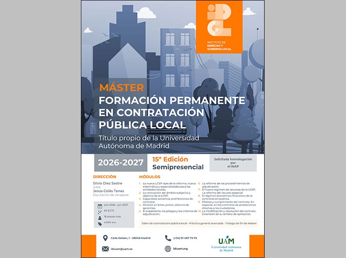 Máster en Contratación Pública Local, 14ª Edición (2025-2026)(Semipresencial, de enero de 2025 a junio de 2026) Máster en Contratación Pública Local, 14ª Edición (2025-2026)(Semipresencial, de enero de 2025 a junio de 2026)Gobiernolocal2025-08-07T09:32:41+02:00