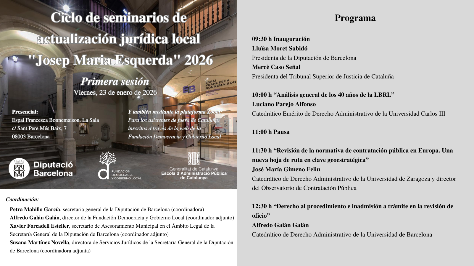 Ciclo de seminarios de actualización jurídica local «Josep Maria Esquerda» 2026 – Primera sesión