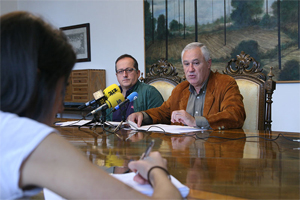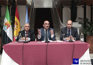 "Nosotros cumplimos". Así define Valentín Cortés, presidente de la Diputación de Badajoz, el trabajo realizado con los presupuestos de 2014 para la provincia y la línea que se va a seguir el próximo año, "con el cumplimiento de los compromisos que nos marcamos y con una revitalización continua en el desarrollo de los municipios". El presidente lo destacó el 16 de octubre en una rueda de prensa ofrecida en Llerena (Badajoz), donde compareció ante los medios de comunicación en compañía del diputado de Hacienda, Pedro Noriega, y el vicepresidente de la Institución Provincial, Ramón Ropero. |
