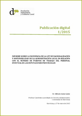 Informe sobre la incidencia de la LRSAL en relación con el número de puestos de trabajo del personal eventual en las diputaciones provinciales, Publicación digital 1/2015, Fundación Democracia y Gobierno Local | |||||