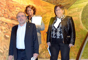 El presidente de la Diputación de Lleida, Joan Reñé, acompañado por la vicepresidenta primera, Rosa Maria Perelló, ha presentado este viernes el proyecto de presupuesto para el año 2016. Las cuentas ascienden a 103 661 349 euros, y consolidan la acción de gobierno municipalista y social de los últimos años, a la vez que priorizan la reorganización tecnológica de la institución para sobresalir en transparencia y procedimientos electrónicos de gestión documental y contratación. | |||||