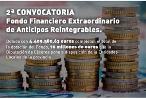 | Dotada con 4.409.580,63 euros, completa el total de la dotación del Fondo, 10 millones de euros que la Diputación de Cáceres pone a disposición de las entidades locales de la provincia | ||||||