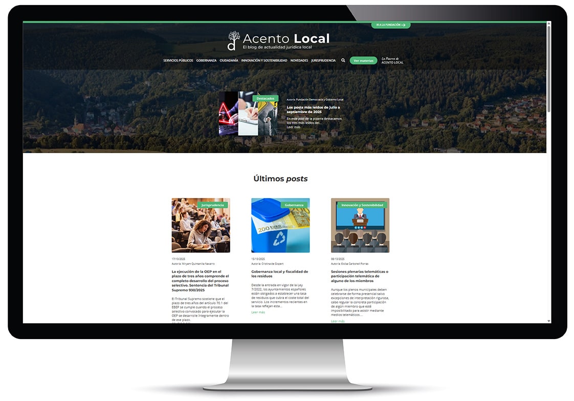 En octubre de 2022, la Fundación Democracia y Gobierno Local puso en marcha su blog de actualidad jurídica local, Acento Local. Tres años después, ha recibido más de 250 000